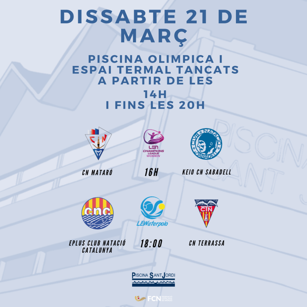 Consulta el calendari de competicions organitzades per la Federació Catalana de Natació i els esdeveniments exclusius de Piscina Sant Jordi.
